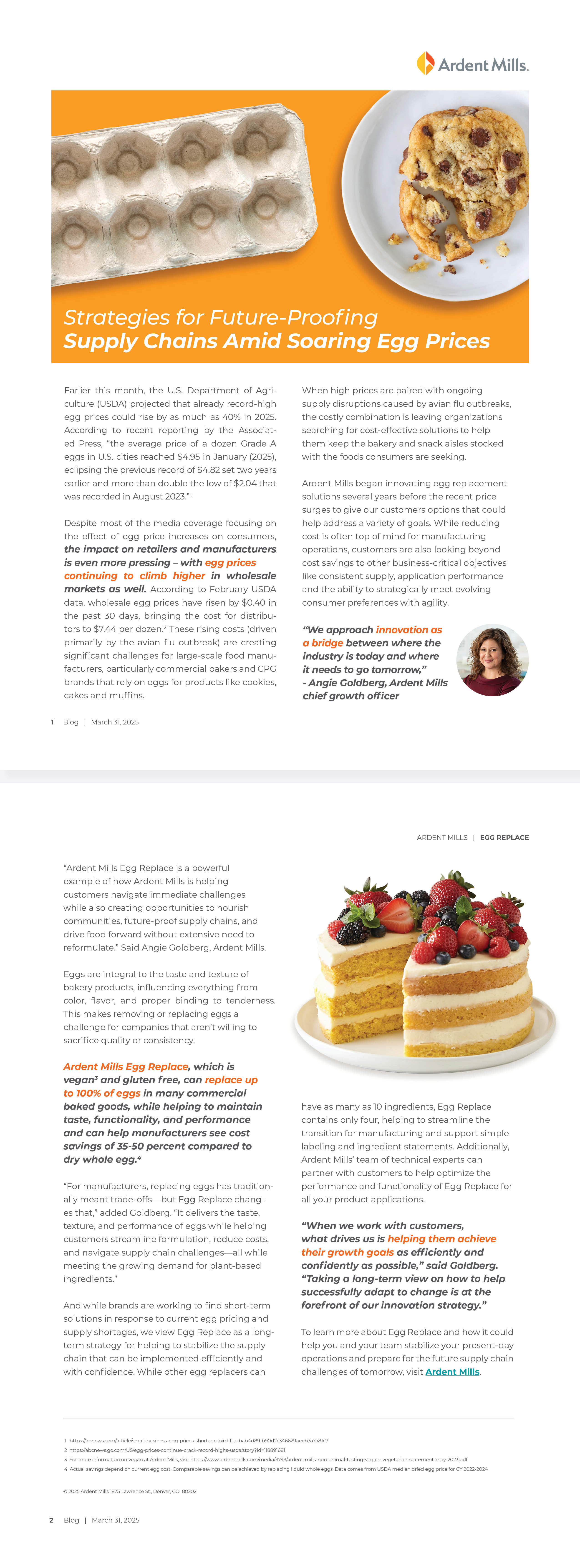 With US egg pricing and supply fluctuating almost daily, CPG manufacturers and commercial bakeries need ingredient solutions to help offset higher costs and supply shortages. At Ardent Mills, we’re working with customers to implement both short- and long-term strategies for addressing these challenges while still creating products that deliver on consumer expectations.